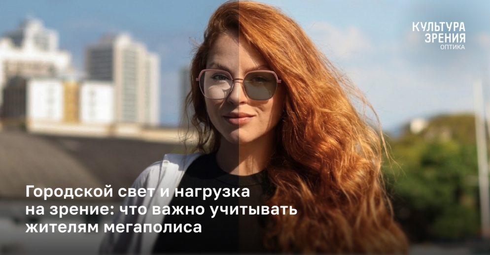 С возрастом снижается скорость адаптации к свету. Глазам требуется больше времени, чтобы комфортно перейти из яркой среды в более темную и обратно. Это естественный процесс, который в городе становится заметнее, так как глаза постоянно адаптируются к разному освещению: экраны, офисный свет, улица, фары, витрины. Это не один источник света, а непрерывная смена яркости и контраста, которая и создает основную нагрузку.